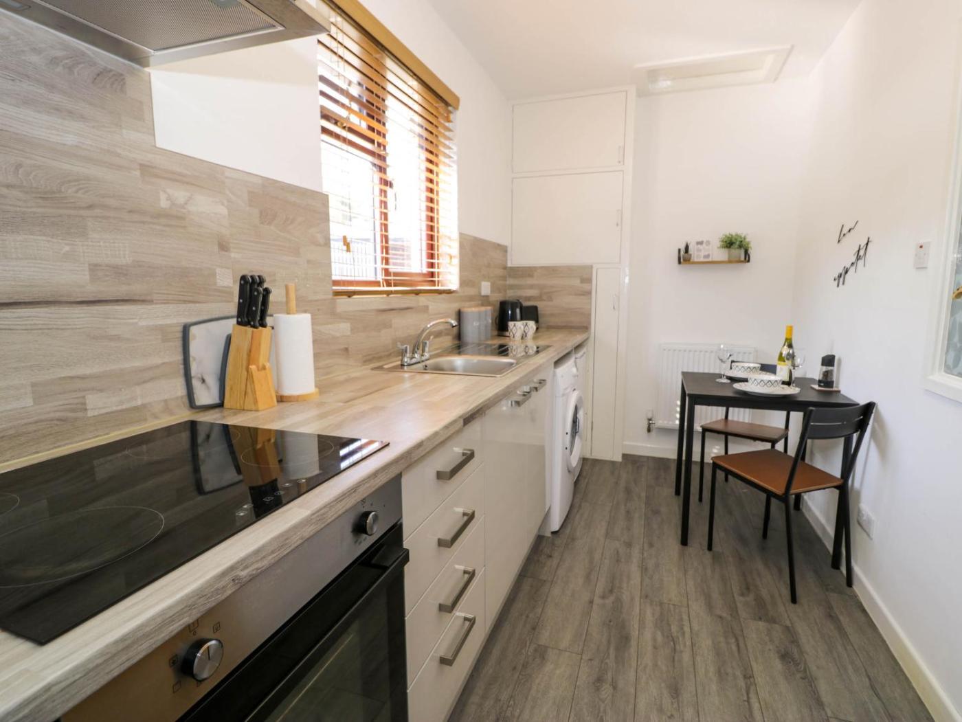 Holiday Home. This holiday home features 1 bedroom, a seating area with a sofa and 1 bathroom with a walk-in shower. The well-fitted kitchen has a stovetop, a refrigerator, a microwave and a toaster. The holiday home features a washing machine, a dining area, a wardrobe, an electric kettle, as well as a TV. The unit has 1 bed.