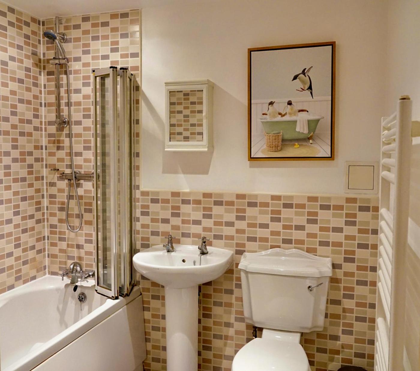 Apartment. This apartment comes with 1 bedroom, a kitchen and 1 bathroom with a bath. Meals can be prepared in the well-fitted kitchen, which features a stovetop, a refrigerator, kitchenware and an oven. The apartment features a washing machine, a tea and coffee maker, heating, as well as a TV. The unit has 1 bed.