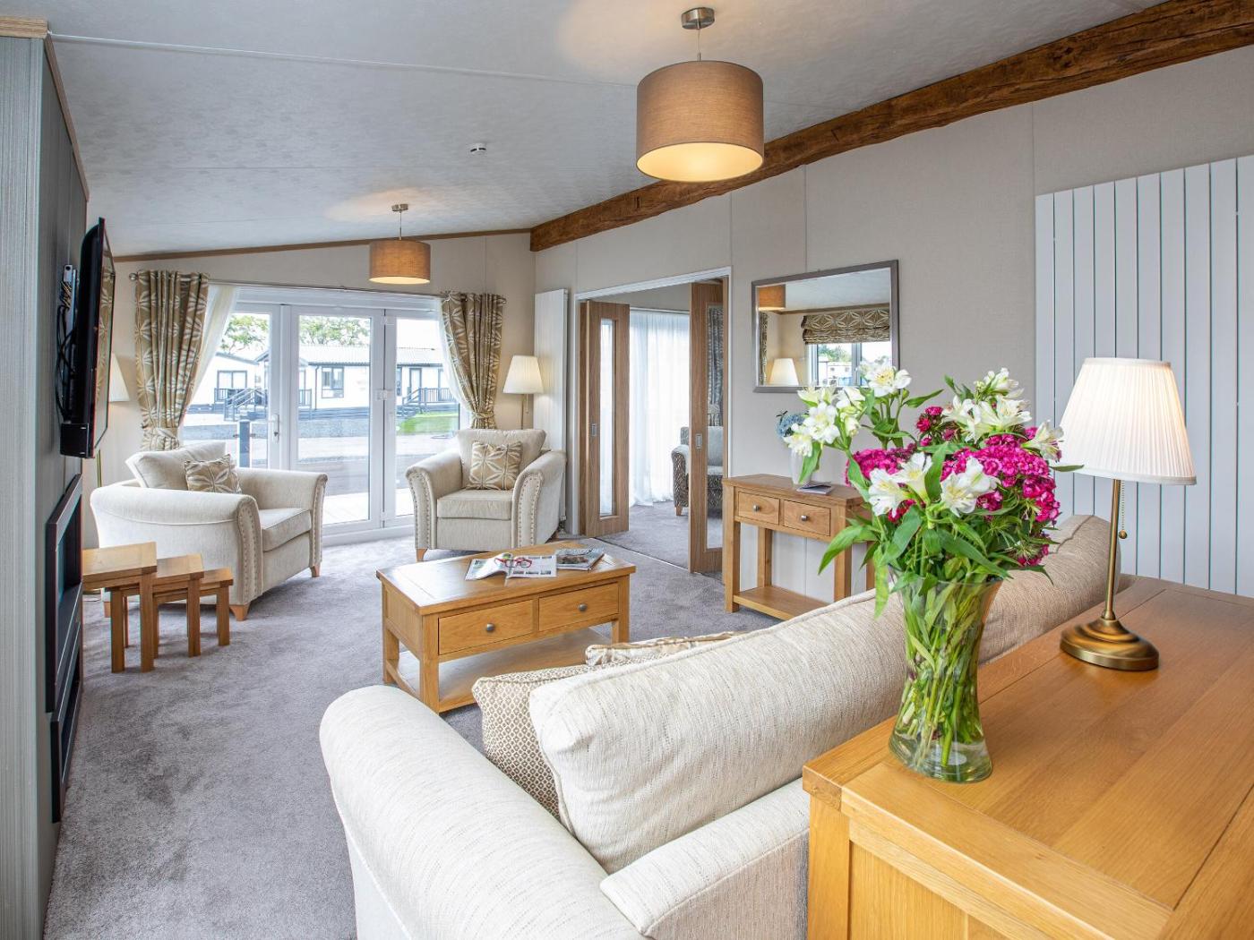 Two-Bedroom Holiday Home. The hot tub is a top feature of this holiday home. Boasting a private entrance, this holiday home includes 2 bedrooms, 1 bathroom and a kitchen. The holiday homes kitchen, which features a dishwasher, is available for cooking and storing food. This holiday home has a washing machine, heating and a TV. The unit has 3 beds.